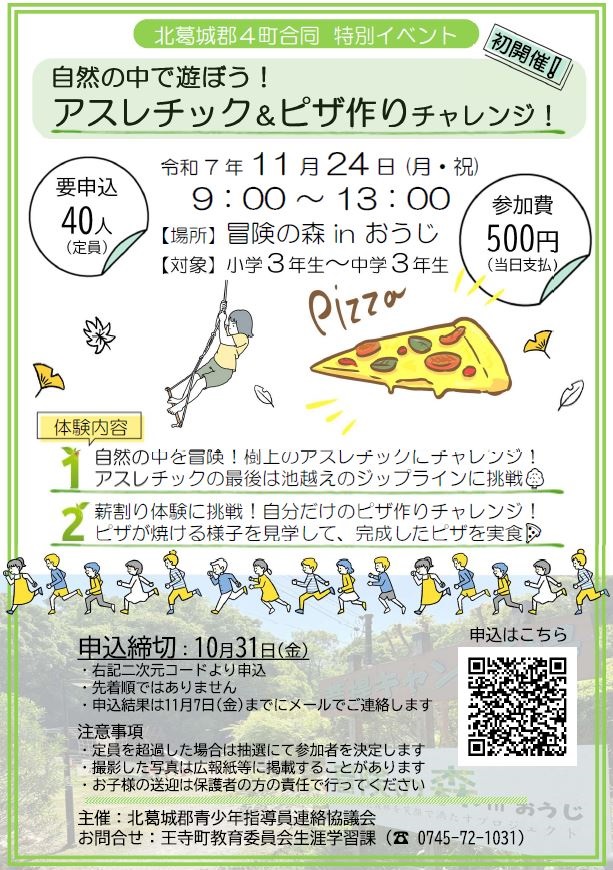 『アスレチック&ピザ作りチャレンジ!』開催案内