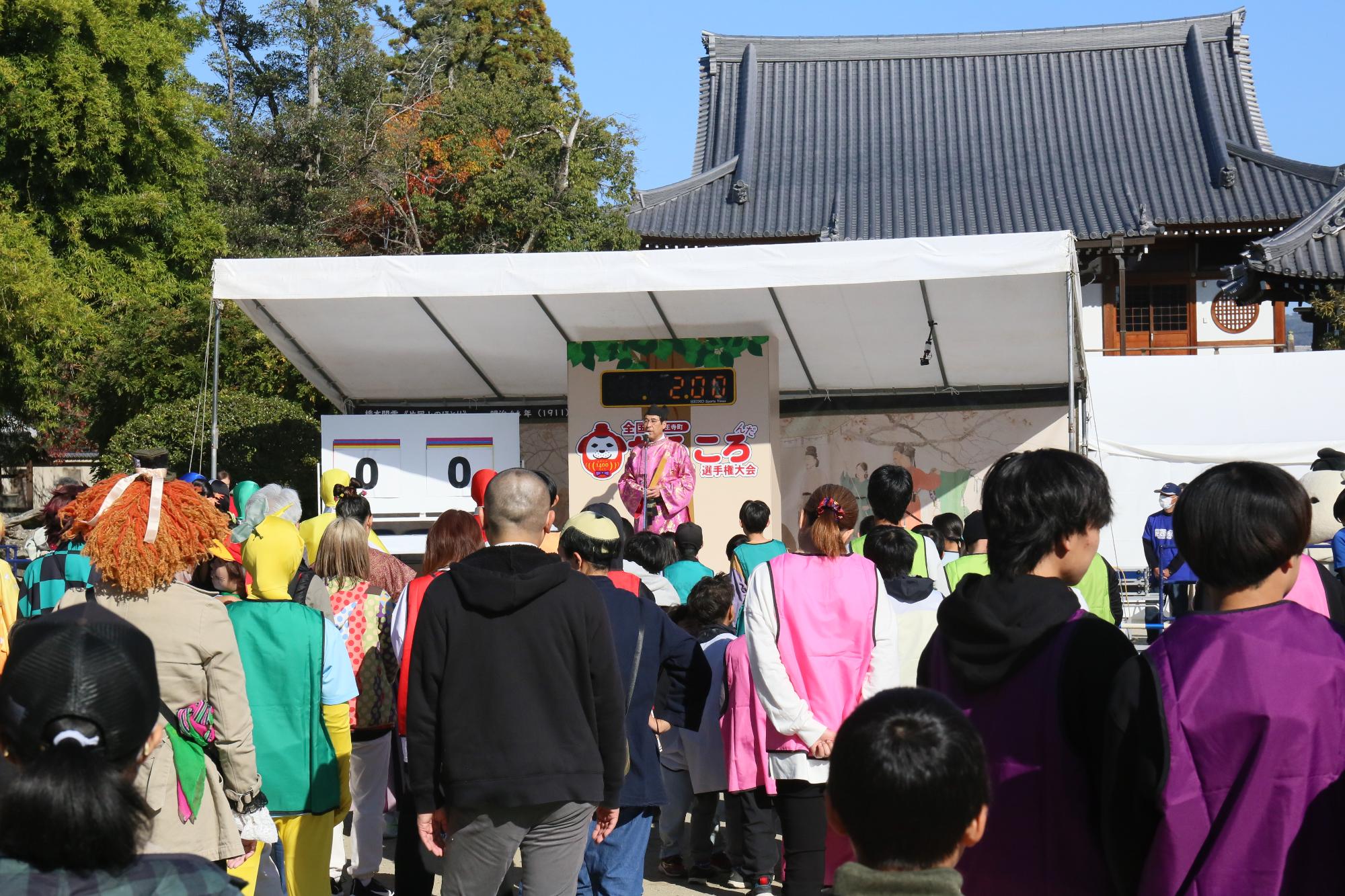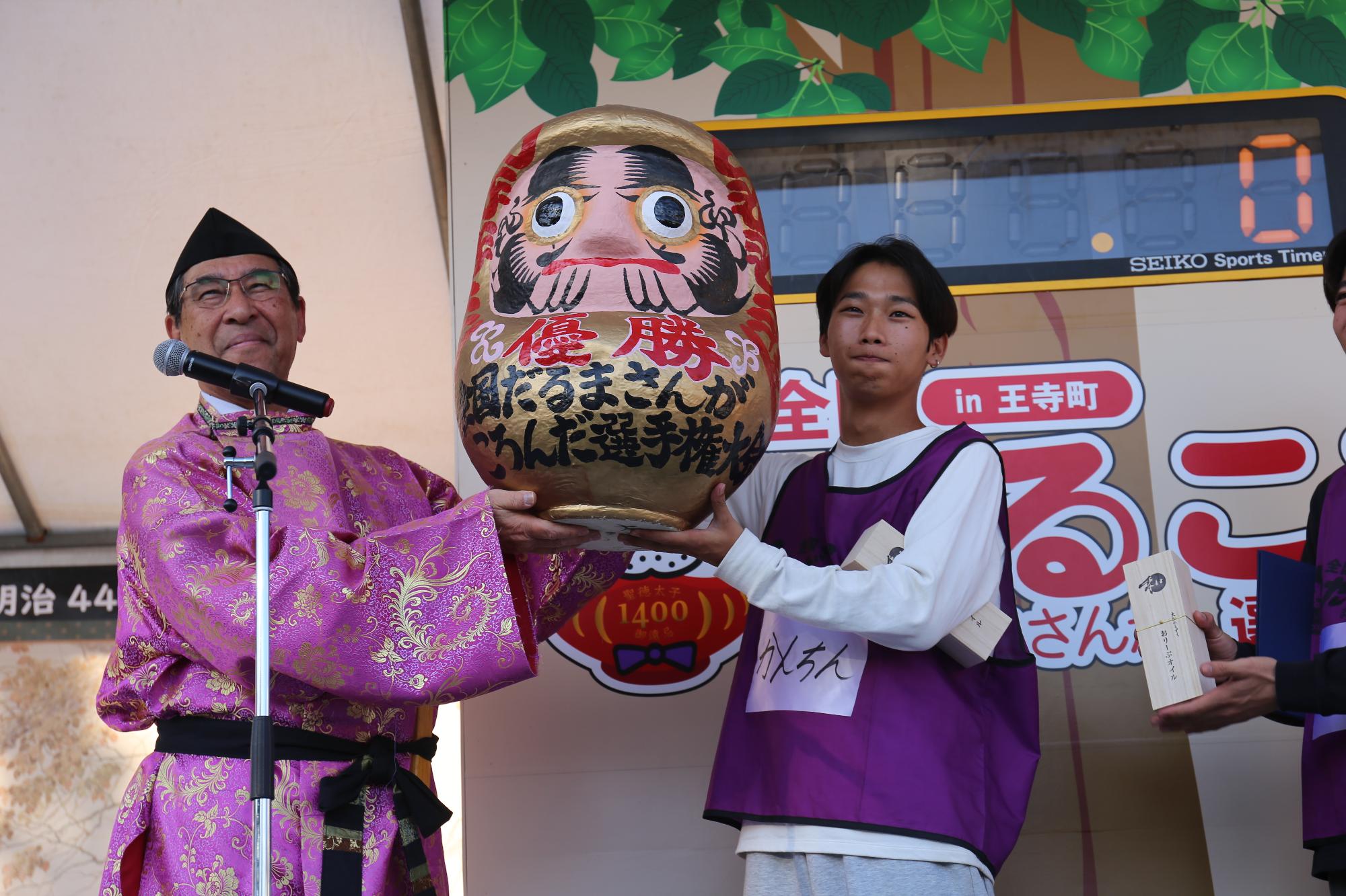 王寺町の文化財を生かした観光拠点づくり協議会主催による「第5回全国だるまさんがころんだ選手権大会」が2日間にわたり開催されました。15日には王寺北義務教育学校グラウンドで予選リーグが行われ、全国から集まった48チーム・計240名が参加されたほか、王寺町制施行100周年を記念し、来場者の参加による「100人で雪丸がころんだ」を実施しました。16日には達磨寺境内で決勝トーナメントが行われ、予選を勝ち上がった20チーム・計100名の方が参加されました。