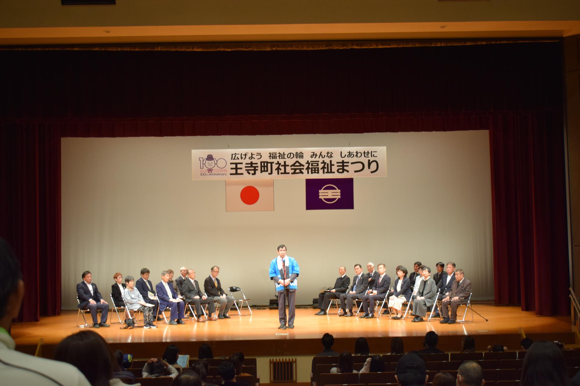 王寺町社会福祉協議会主催の「王寺町社会福祉まつり」を開催しております。午前中は町制100周年記念特別展示として畠田3自治会(山上・小黒・送迎)からだんじりを曳航されてセンター正面に展示、同じくセンター前で模擬店の出店、午後は大ホールで式典・催物が行われました。約1,122名の方の参加をいただいております。