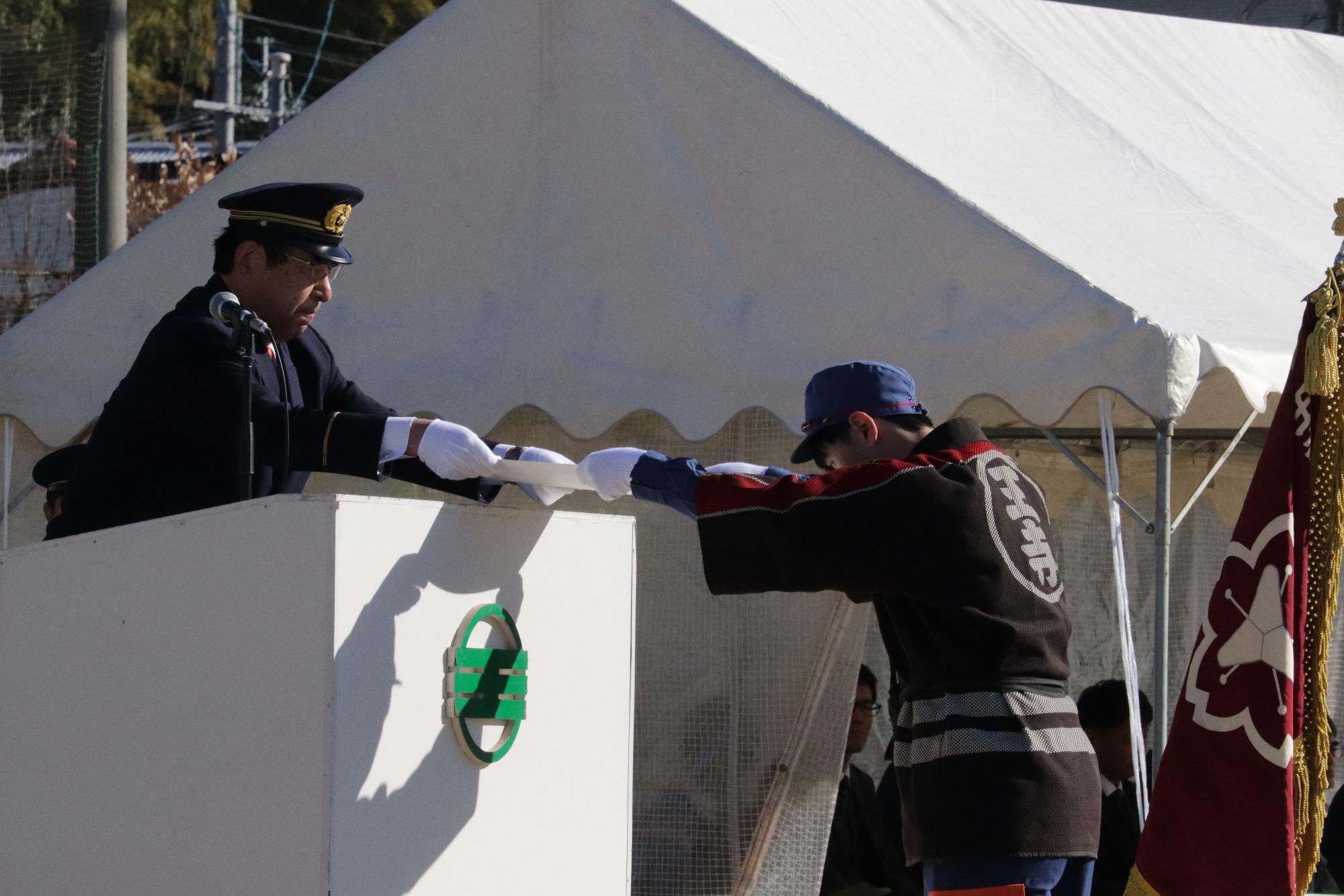 王寺町消防団の出初式を開催いたしました。集まった団員の皆さんは、年頭にあたり王寺町を災害から守る決意を新たにされました。