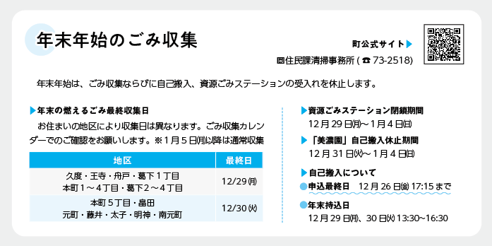年末年始の自己搬入(美濃園)・資源ごみ回収ステーションの受入れについて